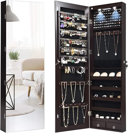 Langria full length mirror jewelry cabinet organizer with 8 led lights diy jewelry armoire with lockable magnetic door for safe storage of cosmetics accessories makeup 4 6 out of 5 stars 42 159 99 159.
