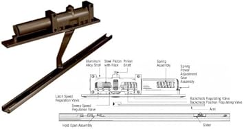 Features adjustments for closing sweep and latch speed and backcheck.